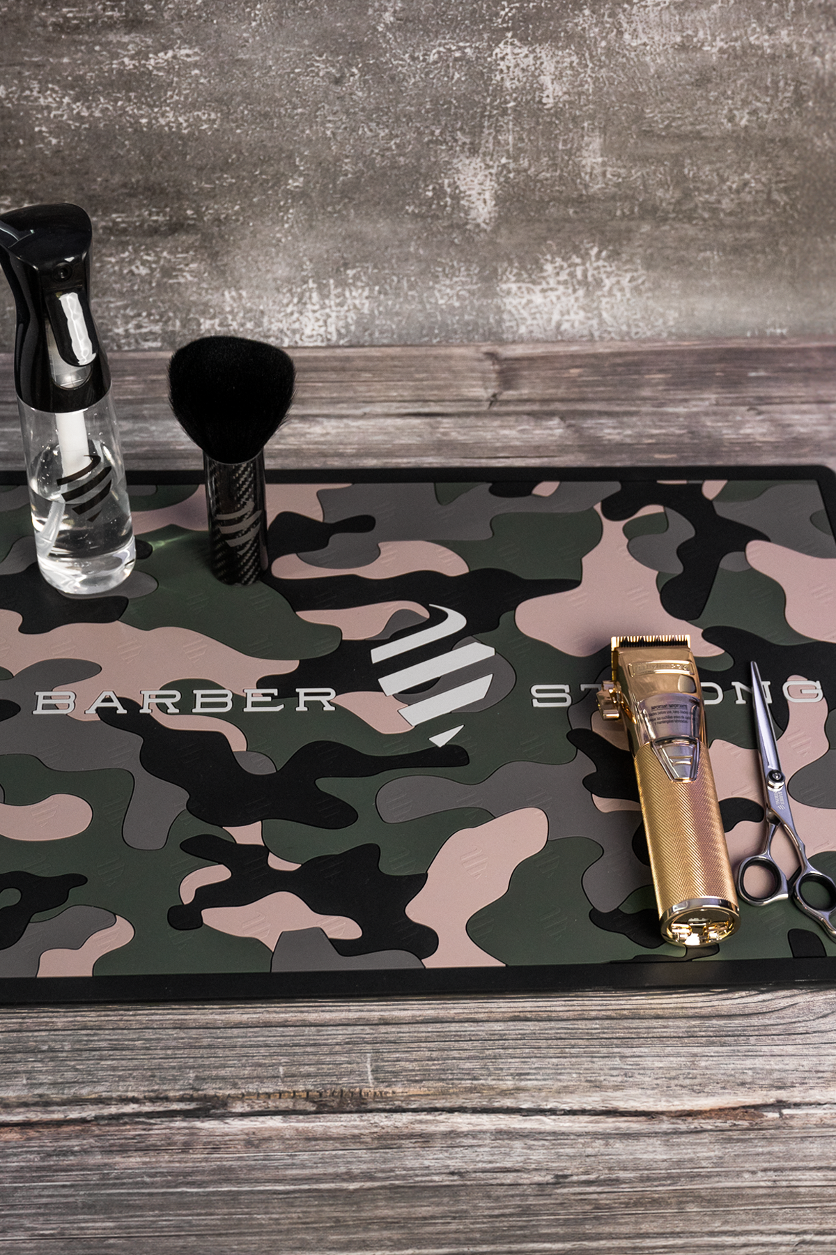 The Barber Strong logo, staggered and raised slightly throughout the Mat, provides extra grip and helps prevent tools from sliding off the station onto the floor. It also protects up to 200°F to give warm clippers, trimmers, and detailers a rest after running all day in the shop. The Barber Mat can be easily wiped down with a wet cloth or disinfectant wipe to keep clean.